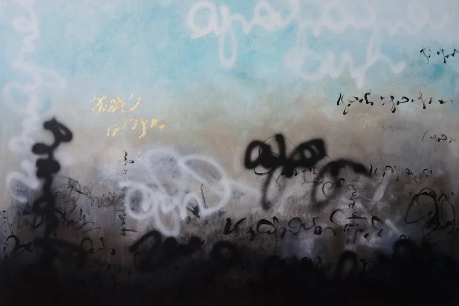 My work is primarily inspired by nature’s elements, urban graffiti and societal issues. In my paintings I enjoy the gestural expression of thought through Asemic writing, a wordless open form of writing allowing the viewer to hover in a state between reflecting on their own interpretation while simultaneously seeing the work.